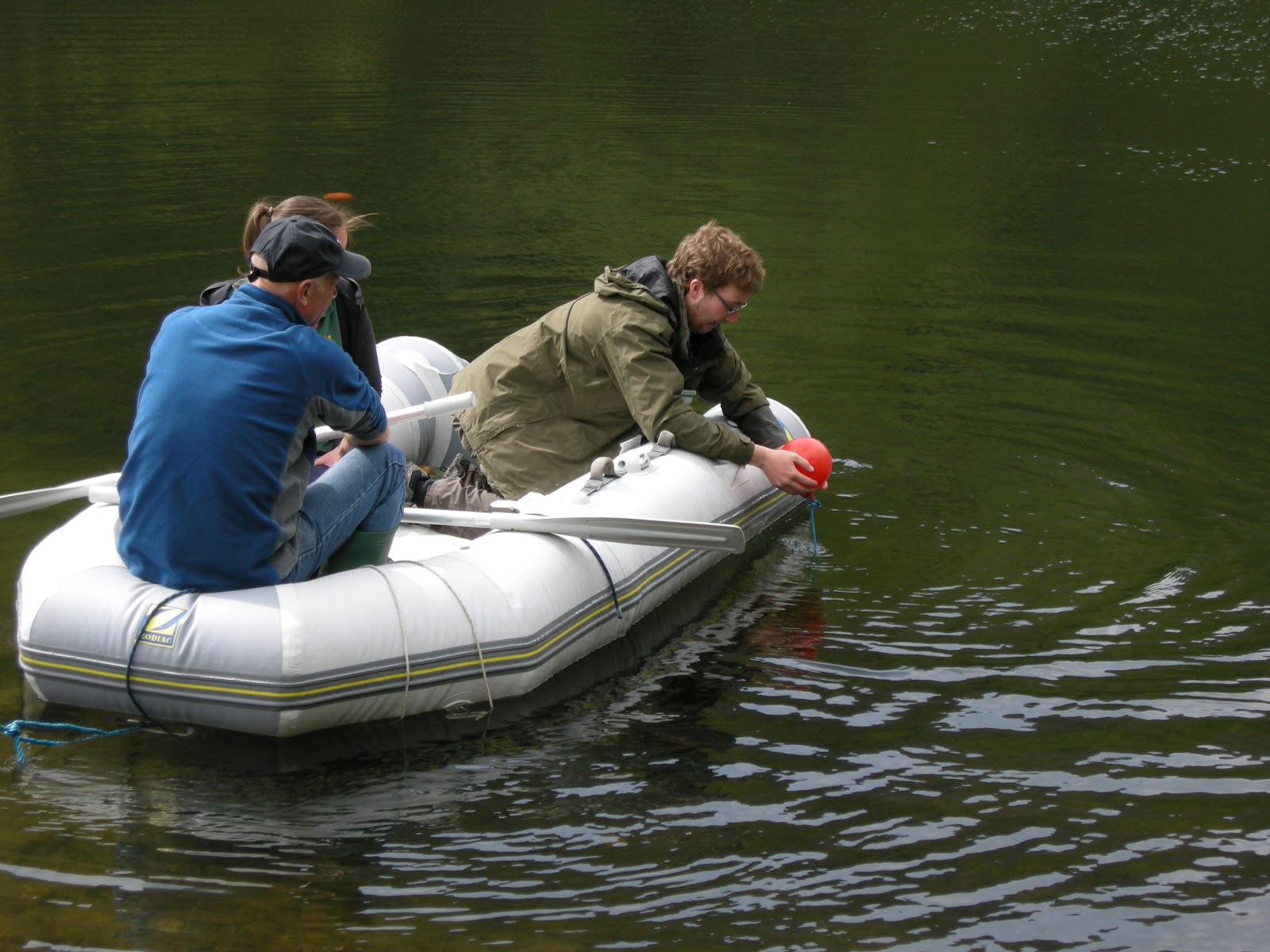 On Monday, half a dozen buoys anchored to concrete blocks were put into the reservoir for wild swimmers to know where the depth goes beyond 1.4m. Dave Plaice, one of our volunteers, bought along his dinghy so getting around the reservoir was made easier.