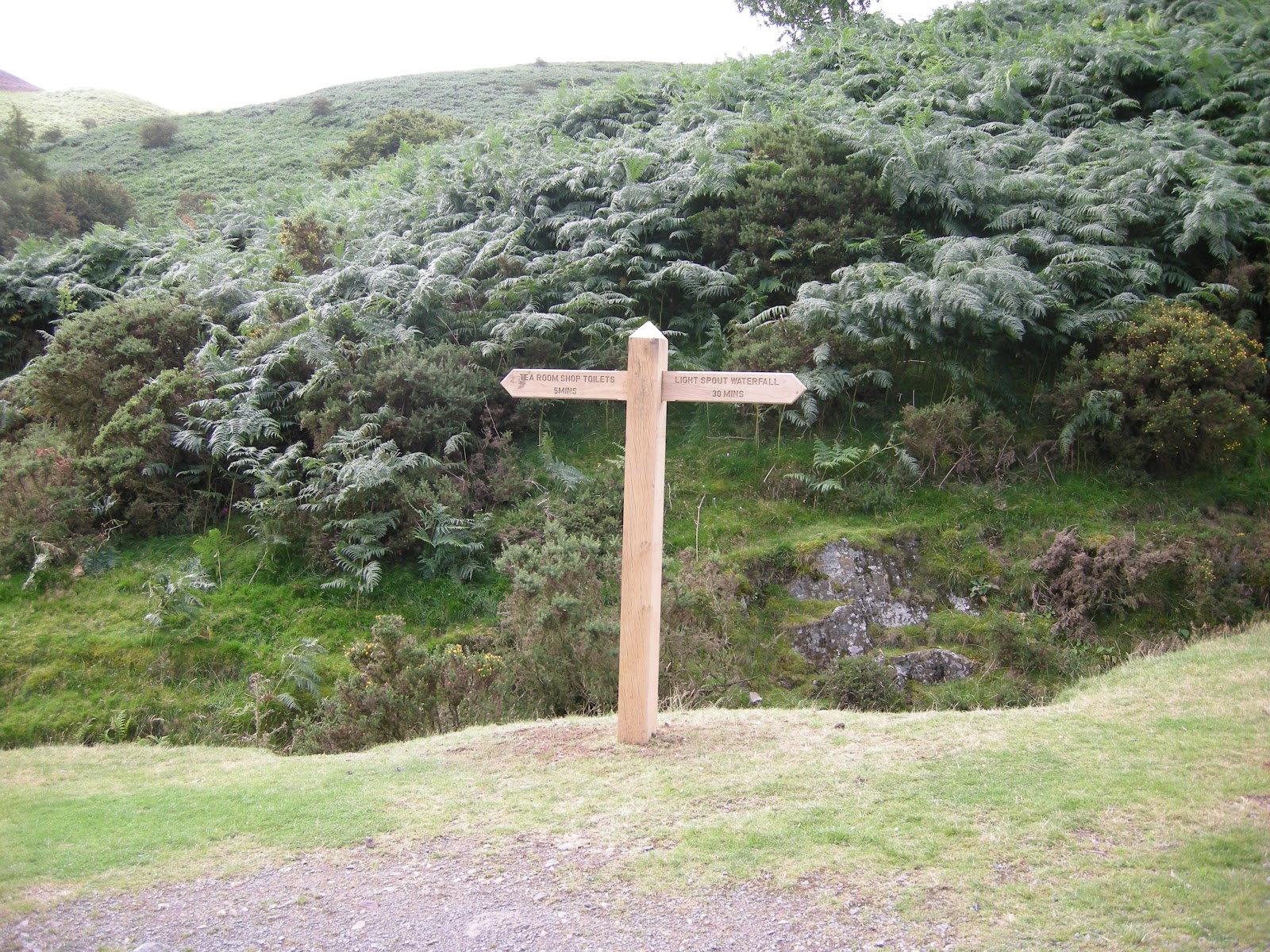 The last two finger posts from Dudmaston were modified by Tom and John before being installed in the top car park and the confluence by Tom, Matt and Kate. They will now help direct people to the tea room, waterfall and shooting box.
